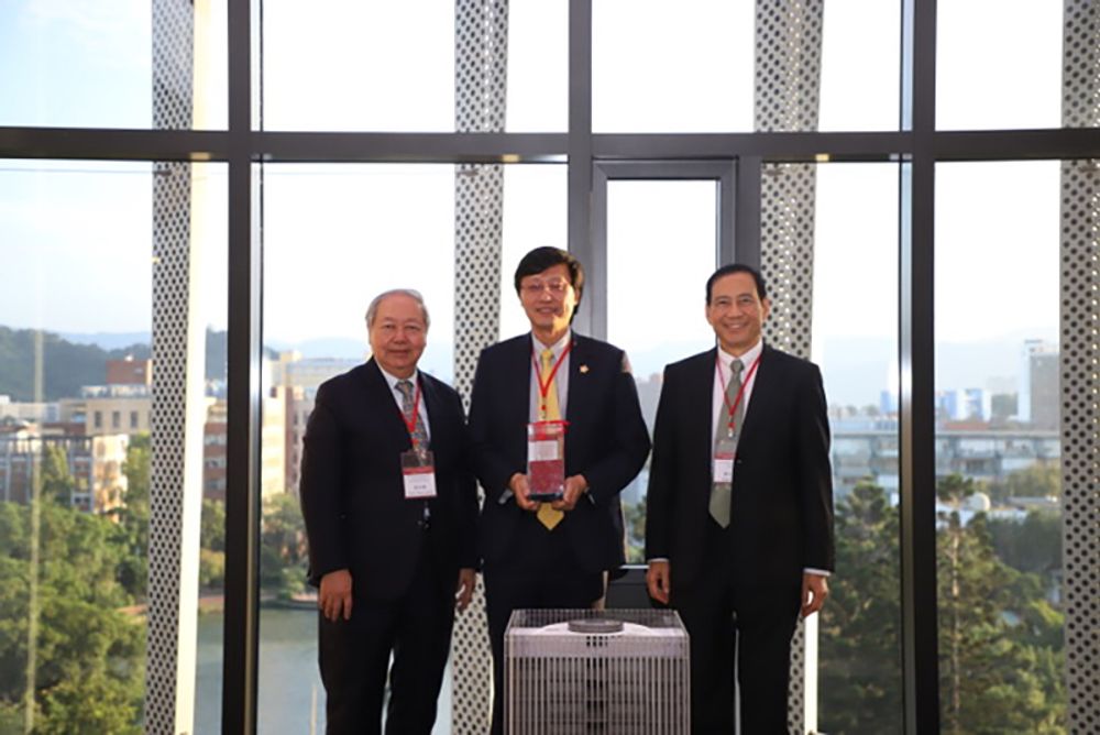 國立臺灣大學次震宇宙館捐贈儀式 梁次震副董事長(左)/郭代校長(中)與陳丕燊主任(右)