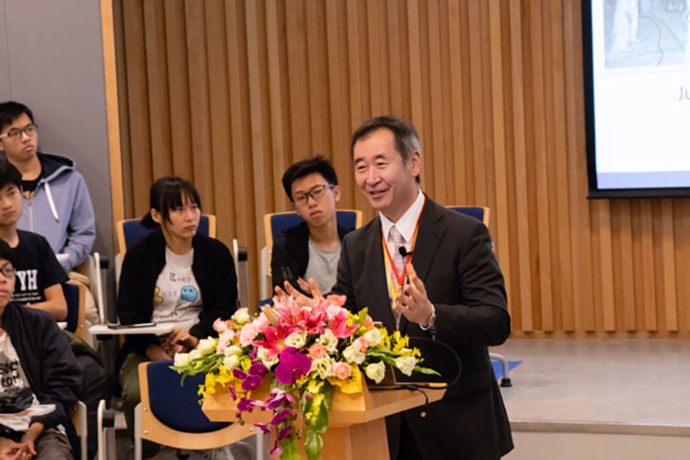 臺大很榮幸邀請到2015諾貝爾獎得主、東京大學梶田隆章教授親臨見證捐贈儀式。梶田教授並於儀式後在館內進行科普講座:『透過微中子與重力波來揭開宇宙的神秘面紗』,除了郭代校長、梁副董事長、臺大師生之外、社會人士也非常踴躍出席。梶田教授從以他諾貝爾獎宇宙微中子的發現,及他目前主持的KAGRA重力波觀測站為例,分享他的研究成果。他深入淺出的介紹讓全體觀眾受益匪淺。