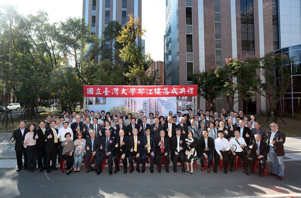 本校化學工程學系於11月15日校慶日下午2點舉行「鄭江樓落成典禮」,當日由代理校長郭大維教授、前校長楊泮池教授與前校長李嗣涔教授蒞臨落成典禮,並邀請長春集團常務董事鄭正先生(已故鄭信義先生公子),鄭正常董夫人廖真涓女士,二位公子鄭安哲先生和鄭宇哲先生,長春集團副總裁陳顯彰先生,臺大化工系校友會理事長楊銀明先生以及臺大各級長官等貴賓蒞臨,共同進行落成揭碑儀式。隨後請鄭江樓捐款人鄭信義先生家人進行一樓大廳「信義講堂」揭牌儀式。當日另邀有二座演講廳捐款人四維創新材料股份有限公司董事長楊慧玲女士,四維精密材料股份有限公司董事長楊蔚萌先生,詮達化學股份有限公司董事長黃河清先生,慶琅文化藝術基金會董事長黃黎月女士分別進行二樓的「斌彥廳」與「慶琅廳」揭牌活動。