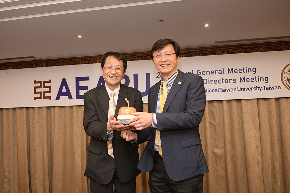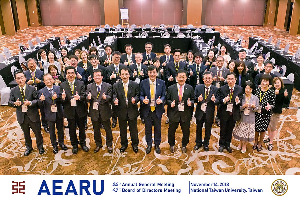 臺大今年於11月14日假福華飯店主辦東亞研究型大學協會(Association of East Asian Research Universities, AEARU)第四十三屆理事會(Board of Directors’ Meeting)及第二十四屆年會(Annual General Meeting),作為臺大90週年校慶週系列活動的開頭。本次年會有來自5個國家地區13校共42人參與,其中包括現任協會主席暨日本筑波大學校長Kyosuke Nagata、日本東北大學校長Hideo Ohno、韓國延世大學校長Yong-Hak Kim等人。