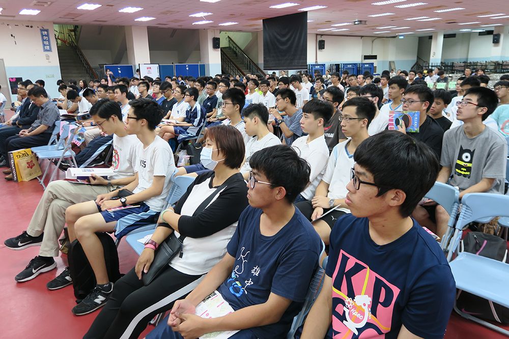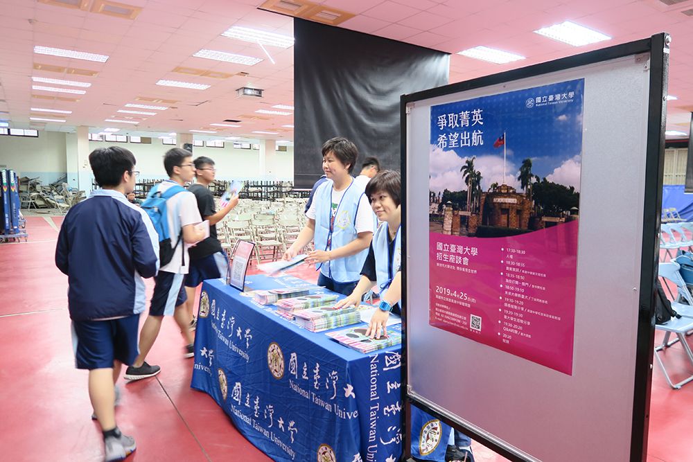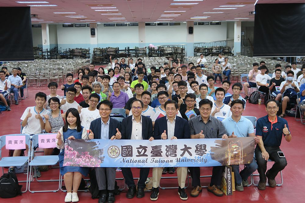 本校在招生方面推動「擴大希望,爭取菁英」策略,除了規劃增加弱勢生希望入學名額、提供弱勢生更全面的照顧之外,更研擬多種方式積極爭取頂尖菁英學生。今年由校長組團分別在各地以座談會的方式,邀請高中教師、學生及家長面對面談話,讓大家更能瞭解就讀臺大的優點,先前在臺中與臺北辦理座談會時,當地學生與家長反應皆相當熱烈。今天的招生座談會在具有悠久歷史的高雄市立高雄高級中學體育館舉辦,以在地化與大學升學經驗為交流分享主軸,由管中閔校長偕同丁詩同教務長、高雄中學校友吳政衛副教授及畢業於南部地區高中之在校學生擔任座談會主講人,高雄高級中學謝文斌校長亦全程參與,現場的高中生及家長透過本次座談會的資訊分享、與本校師長同學提問互動、經驗交流,相信對本校有更進一步的了解,期待能吸引更多優秀學生選擇臺大、加入臺大。