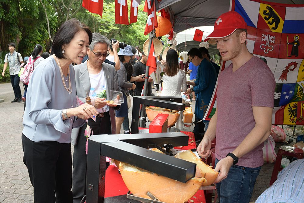 緊接在開幕式之後的異國美食暨文化展,今年共計有25個學生團體登記,共32個攤位,由本校僑陸及國際生社團,以及來自不同國家的學生穿著代表自己文化的傳統服裝,設攤展售其獨特文化與美食,例如:越南的特色春捲及三明治、瑞士的起司馬鈴薯、馬來西亞的咖哩雞飯等各國佳餚琳瑯滿目,帶給參觀民眾一趟實質異國饗宴及文化之旅。下午還有馬來西亞同學會帶來的熱舞及歌唱表演、印尼同學的傳統舞蹈表演、以及印尼同學會的自彈自唱,使鹿鳴廣場湧入近千名學生、校友、民眾等同樂熱鬧無比。