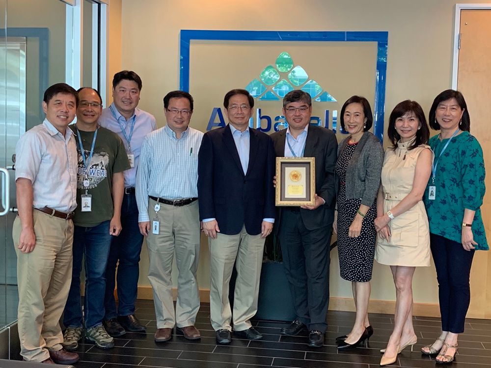 王奉民校友於1985年臺大電機系畢業,1991年獲美國Columbia University哥倫比亞大學電機博士學位後,開始創業,為本校2016年第11屆工商類傑出校友。一行人拜訪王奉民校友於2004年所創建的Ambarella公司,見到了在該公司服務的五位臺大校友,感受到臺大校友們在海外團結合作的成果與正面能量。王奉民校友於簡報當中詳細說明其公司以影像擷取、辨識、應用與傳輸為主軸,從早期私人影像拍攝、傳輸分享開始,到現在發展人工智慧處理影像數據,並朝向保安(Security)與自動車(Autonomy Vehicle)及機器人應用(Robotics Application)努力,在影像技術發展與應用上與國際頂尖大公司並駕齊驅,並擁有相當多元的國際大客戶。