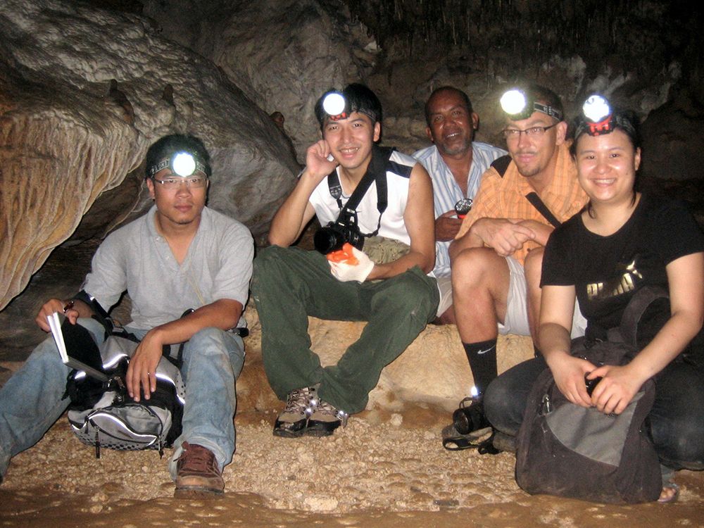 研究人員在泰國南部可蘭洞 Klang Cave 合影
