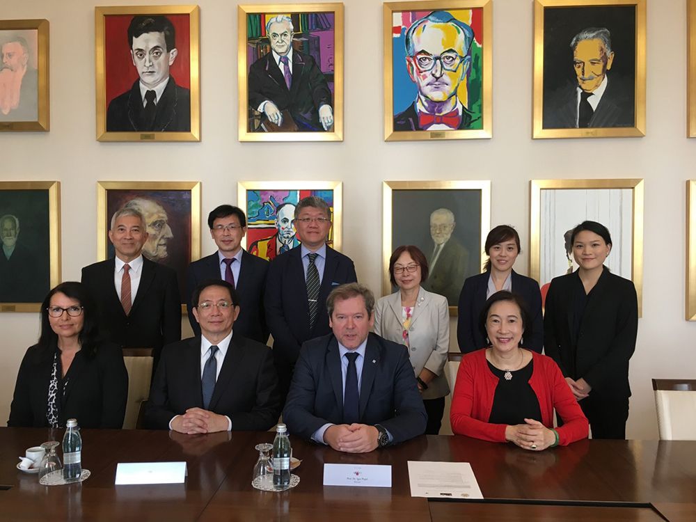 本校管中閔校長、周家蓓副校長、中文系梅家玲主任、網媒所施吉昇所長、國家地震中心前主任蔡克銓教授、數學系前主任陳榮凱教授及國際處同仁一行八人,於今(2019)年9月10日、11日,前往東歐斯洛維尼亞,與該國學術與規模最著名的國家建築與土木研究院以及盧比安那大學,分別簽訂合作協議。