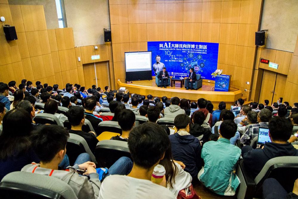 沈博士畢業於卡內基梅隆大學,於1996年加入微軟研究院,目前是微軟全球執行副總裁,為微軟所有華人員工中職級最高者,負責微軟重要技術研發與整合,帶領各個微軟研究院發展,近幾年致力於人工智慧前瞻技術的研發與應用。沈博士在電腦視覺和圖形學研究領域的傑出學術貢獻,也使其榮膺ACM Fellow、IEEE Fellow、美國國家工程院院士與英國皇家工程院國際院士。對談的進行係由陳副校長將事先搜集的問題歸為「迎接ABC的典範轉移」、「AI技術的演進及相關議題」、和「給臺灣及年輕人的建議」三大類,再逐一請教沈博士之看法。