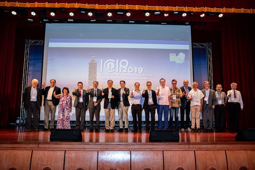 本校電機工程學系陳宏銘教授、交大電子工程學系杭學鳴教授為這次ICIP會議的幕後推手,兩人均曾任職於美國AT&T貝爾實驗室,與CNN之父Yann LeCun隸屬同一實驗室。本次ICIP組織團隊在五年前由陳宏銘教授、杭學鳴教授和南加大郭宗杰領軍,向ICIP大會提案,一路精心籌畫。這次大會可謂衣缽相傳,25年前第一屆ICIP的發起者Tom Huang教授及John Woods教授就是陳宏銘與杭學鳴教授的博士論文指導教授。本次邀請主講者陣容堅強,Keynote的另一位講者為法國洛桑聯邦理工學院(EPEL)的副校長Pierre Vandergheynst,他從圖形訊號處理出發,剖析AI未來發展趨勢。大會並首創「特別貢獻獎」表彰三位ICIP發起人多年來對影像處理領域之卓越貢獻。