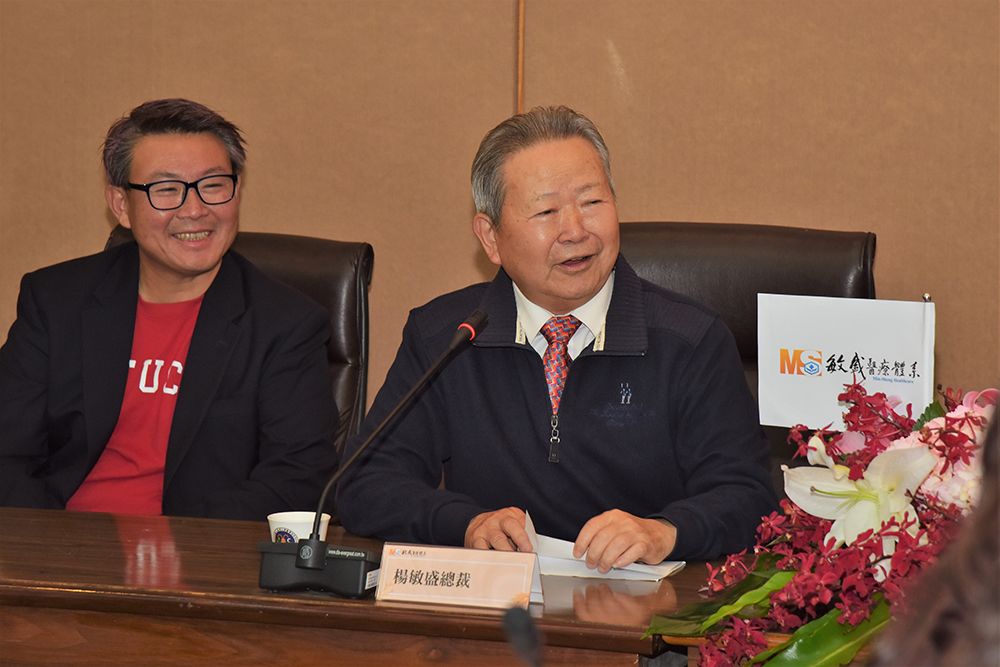 楊敏盛總裁(臺大醫學系1966年畢)與楊弘仁執行長(臺大醫學系 1994年畢)均為本校畢業校友,於桃園地區建立敏盛醫療體系,服務鄉親,是當地照護民眾健康的重要醫療體系;父子兩人也致力於臺灣醫學及護理人員之培育,陸續捐贈回饋母校,希望更多優秀人才投入醫療護理領域。未來會與臺大進行醫學及護理領域之產學合作計畫,期許提升臺灣醫學及護理學界研究創新能力,共同為全民健康福祉盡一份心力。