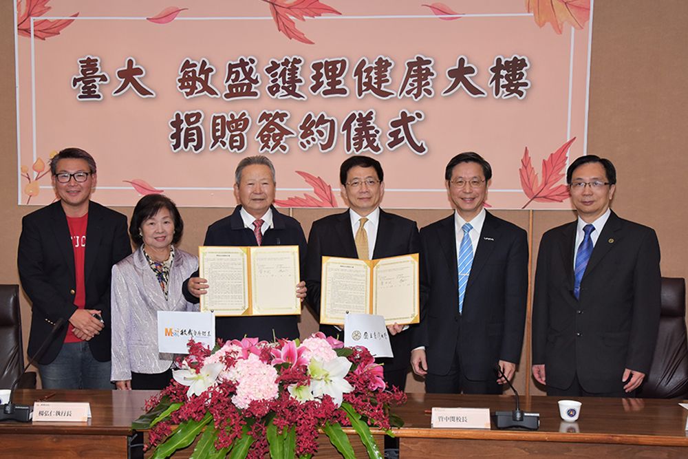 管中閔校長與敏盛醫療體系楊弘仁執行長於2019年12月24日在臺大進行「興建敏盛護理健康大樓」捐贈簽約儀式,臺大張上淳副校長、倪衍玄院長與敏盛楊敏盛總裁及夫人共同出席。敏盛以實物捐贈之方式,於臺大醫學院之校地興建護理系校舍乙棟,命名為「敏盛護理健康大樓」。預計五年內完工,所有興建費用將由敏盛支付。