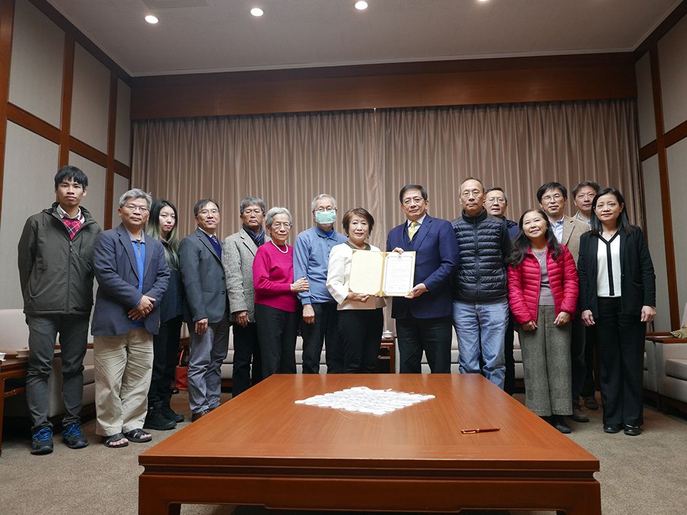 陳文成博士紀念基金會楊黃美幸董事長(左)與臺大管中閔校長(右),於簽約儀式後合影。