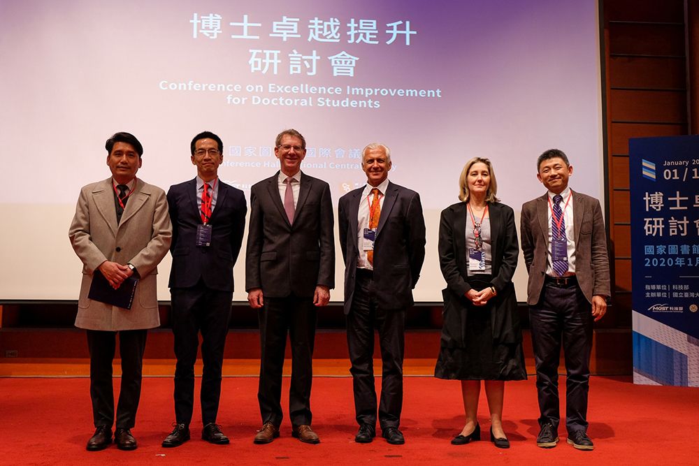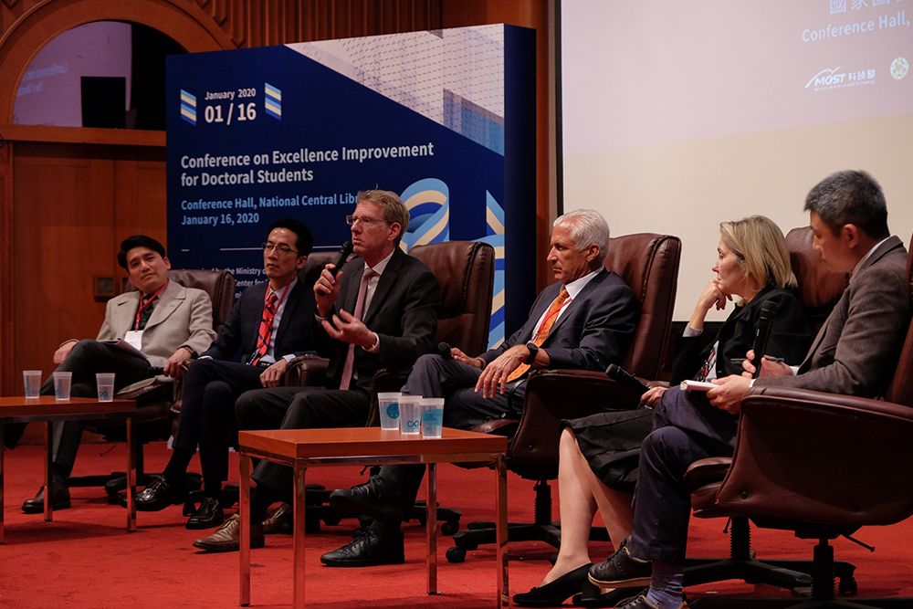 博士卓越提升研討會於109年1月16日上午10時假國家圖書館國際會議廳舉行,由科技部謝達斌政務次長代表科技部致詞,本校李百祺研發長代表本校致詞。大會三場專題演講,由美國伊利諾大學香檳分校研究生學院院長Wojtek Chodzko-Zajko先生、英國劍橋大學博士職涯中心主任Karina Prasad女士、及學術交流基金會(臺灣傅爾布萊特)執行長Randall Nadeau(那原道)先生主講。研討會最後進行綜合座談,由本校詹魁元副教務長擔任主持人。