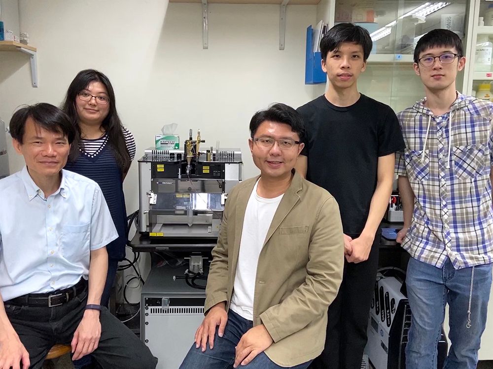 本篇的共同第一作者為生科系大學部畢業生郭學庭 (圖一,右二) 、電機系大學部畢業生簡瑞霖 (圖一,右一)、及生科系碩班畢業生鄭遠儒。其他作者包含: 生科系碩班畢業生李昀儒以及基因體與系統生物學學位學程博班畢業生陳臆嵐 (圖一,左二)。研究經費來自科技部及臺大學術研究生涯發展研究計畫。