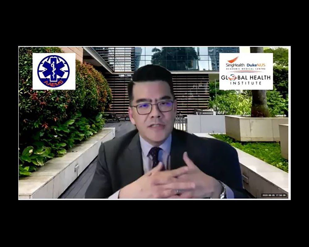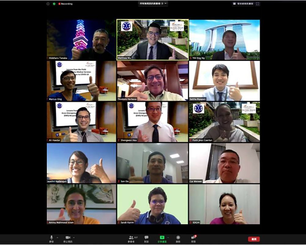 本次研討會由亞洲緊急醫療救護協會與新加坡杜克—國大全球衛生中心(SingHealth DUKE-NUS Global Health Institute)合辦。希望透過此會,探討COVID-19全球蔓延下,緊急醫療救護體系的最適當策略。會議在主席馬惠明副院長開場後,首先由馬副院長報告臺灣社區超前部署與科技防疫的成功關鍵,接下來由菲律賓大學副校長Herbosa教授報告社區檢疫措施的衝擊,韓國的Lee Kyungwon教授報告韓國如何在爆發社區大流行後成功壓平曲線,越南的Son Ngoc Do醫師報告如何應用公衛手段成功抑制疫情,新加坡的Marcus Ong教授以計量模型推估疫情的發展,每個主題都精彩絕倫,讓與會者了解不同區域型態下的面對疫情所作的回應。最後由來自日本、新加坡、印尼、馬來西亞、泰國、印度等國的專家群,回答參加者所提出的問題,並且交流亞洲各國防疫作為。