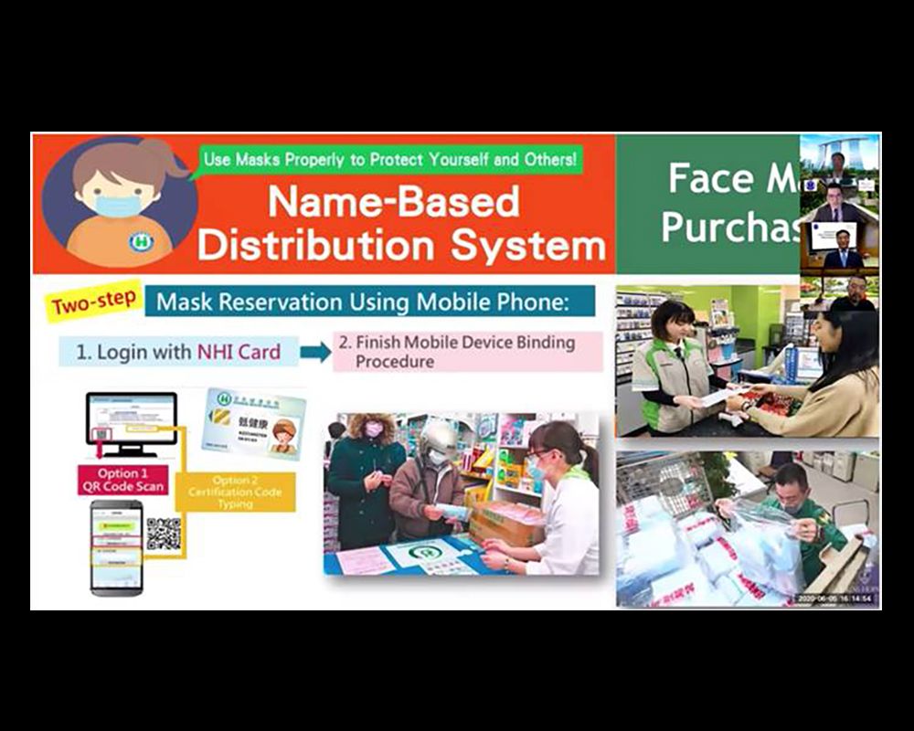 馬副院長分享臺灣獨創以健保卡建立口罩實名制維持秩序,讓每周領取口罩成為民眾防疫生活的一部分。