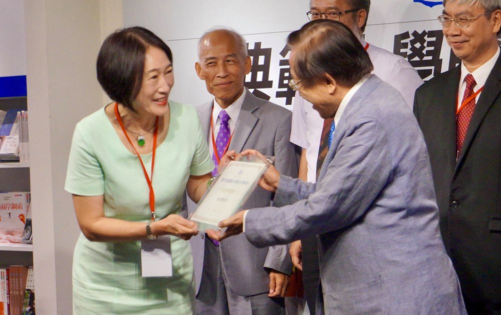 周家蓓副校長(圖左)代表臺大受獎,圖右為遠見天下文化事業群創辦人高希均