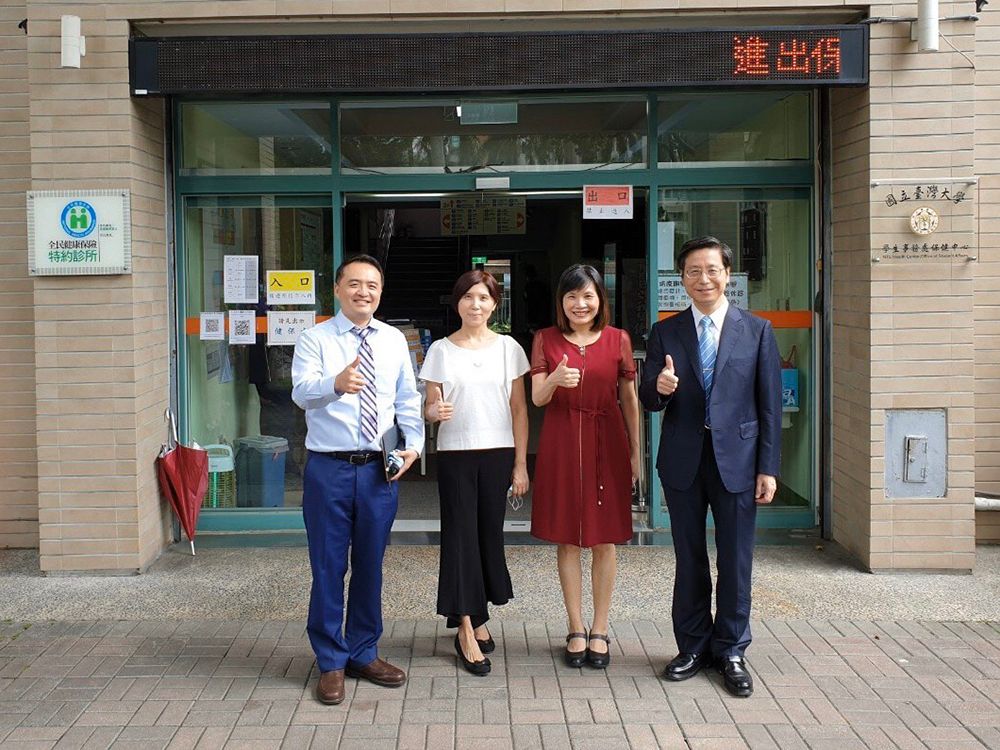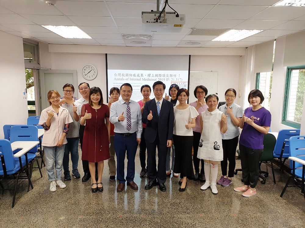 由臺灣大學學務處保健中心主任程劭儀副教授(圖左二)、副校長張上淳教授(圖右一)、學務長沈瓊桃教授(圖右二)、以及史丹佛大學醫學院王智弘(C. Jason Wang)副教授(圖左一)等人共同撰寫的臺灣校園防疫經驗文章,榮登國際頂尖醫學期刊:內科學年刊( Annals of Internal Medicine)