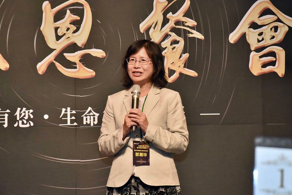 代表受獎老師致詞的醫學檢驗暨生物技術學系鄧麗珍名譽教授。