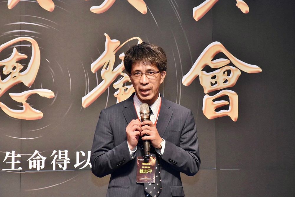 代表受獎老師致詞的資訊管理學系魏志平特聘教授。
