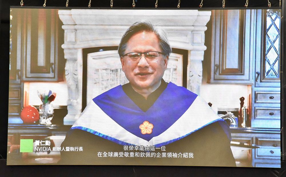 管中閔校長頒贈名譽博士學位給輝達(NVIDIA)創辦人暨執行長黃仁勳。