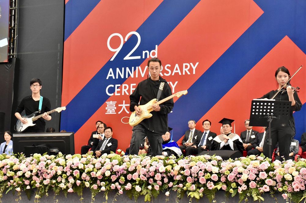 本校於11/15舉辦創校92年校慶大會,會中除了頒贈名譽博士學位給台達電創辦人暨榮譽董事長鄭崇華、輝達(NVIDIA)創辦人暨執行長黃仁勳外,也表揚8位傑出校友以及頒發多個學生獎項,並正式啟用「新增形象識別」,象徵臺大承先啟後,展開新里程。