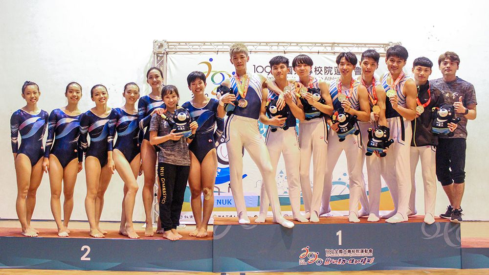 競技體操項目於11月1日在國立高雄科技大學體育館展開,11月2日張維愷同學即奪得一般男生組成隊競賽金牌,復於11月3日比賽中由胡丞筑、王玉青及張維愷分別榮獲一般女生組高低槓競賽、一般女生組地板競賽及一般男生組個人全能競賽金牌。最後體操社在競技體操項目為本校共榮獲3金1銀6銅,並獲得團體錦標獎一般組第三名佳績,值得讚賞。