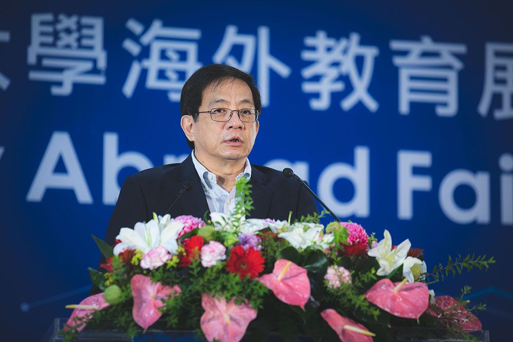 管中閔校長開幕致詞鼓勵學生參加海外教育計畫,勇於走出臺灣,探索世界。