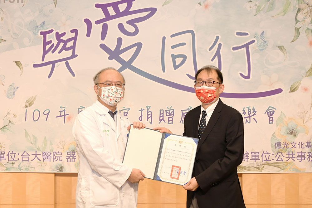感謝器官捐贈者大愛 臺大醫院舉辦「與愛同行」感恩音樂會-頒發合作醫院感謝狀