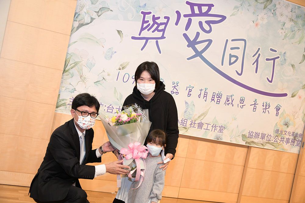 感謝器官捐贈者大愛 臺大醫院舉辦「與愛同行」感恩音樂會-賴逸儒副院長代表獻花感謝器官捐贈者家屬