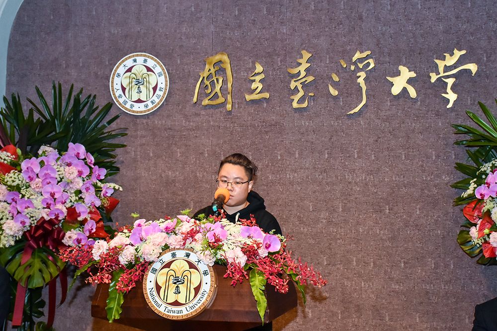 「國立臺灣大學國際學位生助學金」獲獎代表,哲學所博士班饒忠恕(Michael John Rau)致詞。
