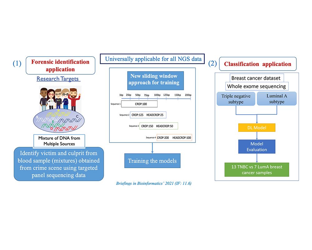 為解決極微量混合檢體在基因定序上所遇到的困難,並提高基因定序在法醫鑑定上的個體辨識的準確性,臺大醫院華筱玲醫師與臺大生醫電子與資訊學研究所莊曜宇教授團隊進行跨領域合作,開發了一套新的人工智慧(AI)模型,首創以深度學習及次世代定序(NGS)資料做為基礎的法醫檢體檢測流程,針對檢體中的DNA個體進行辨識的分析方法,此AI模型能夠分辨出檢體混合物中的主要以及次要來源,進一步辨識出混合檢體中的個體身份。