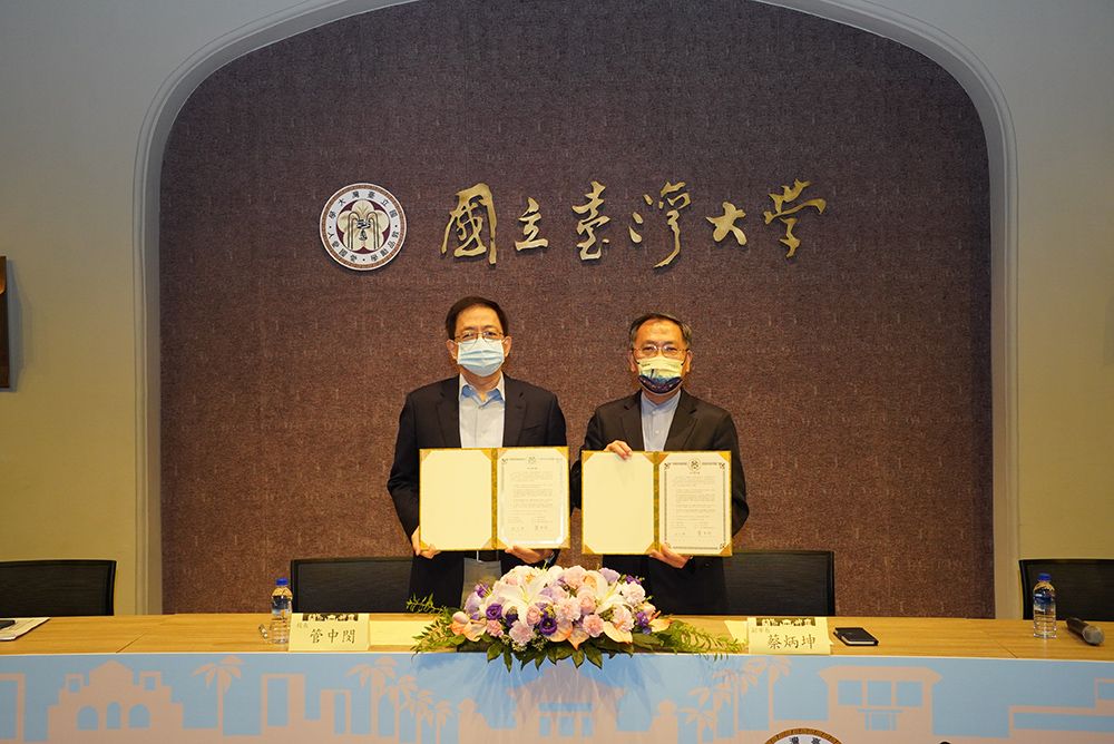 國立臺灣大學校長管中閔及臺北市副市長蔡炳坤交換文化資產合作意向書。