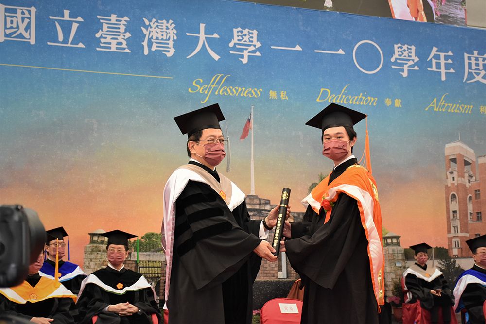 國立臺灣大學於5月21日在綜合體育館舉辦110學年度畢業典禮,今年大學部畢業生有4930人、碩士班畢業生有4693人、博士班畢業生有473人,總計10096人。雖然受到疫情影響,出席的畢業生近700人,但絲毫不減畢業同學與同行家長們對於畢業的喜悅,校園內處處可見拍照留念的人群。本屆典禮以「無私 奉獻 利他」為規劃主軸,期許畢業生以無私的胸懷,為世界奉獻心力,關懷社會、發揮利他精神。