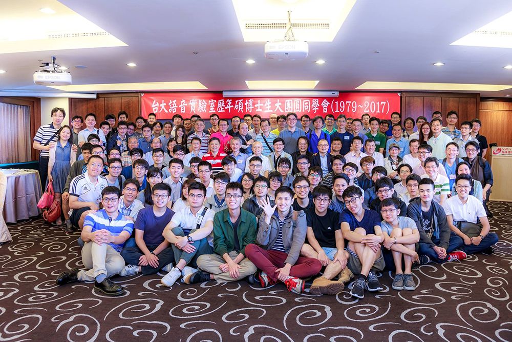 2017年李琳山教授(最後第3排正中央)的語音實驗室歷年碩博士生大團圓活動約有120人到場,當時所有畢業生約有博士40人、碩士200人遍布全球各地。