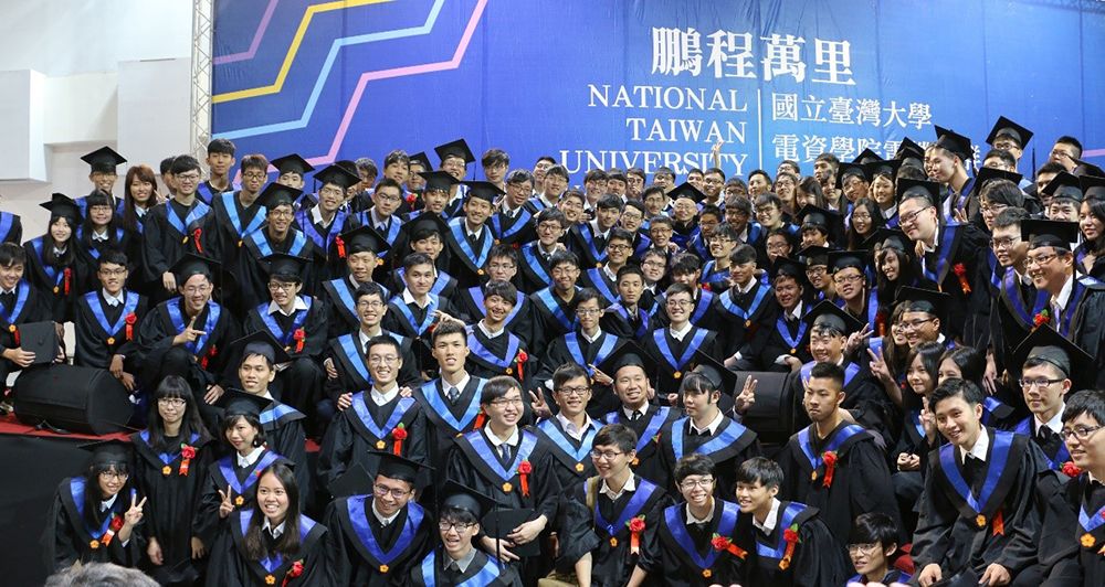 2017年電機系大學部學生的「小畢典」結束時,大群畢業生一擁上台,爭相與李教授合影,幾乎將李教授(最後第二排中間偏右)淹沒。