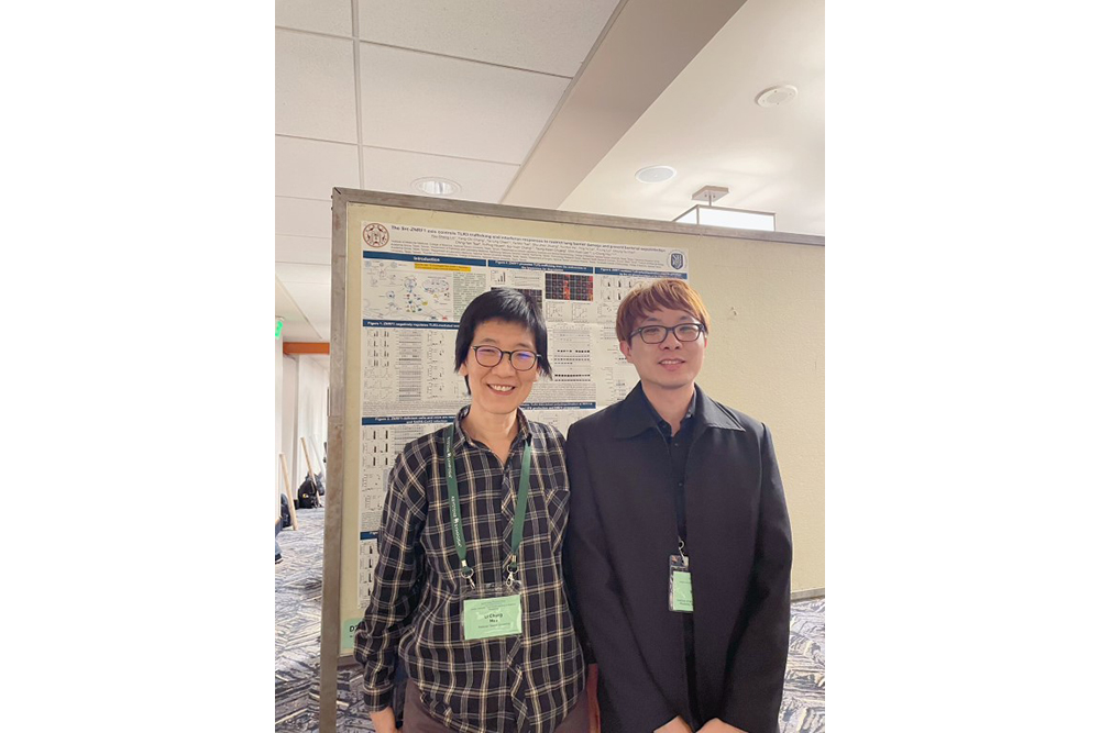 2023年4月參與在美國猶他 KEYSTONE SYMPOSIA國際學術研討會,(左)徐立中教授,(右)第一作者林祐聖博士。