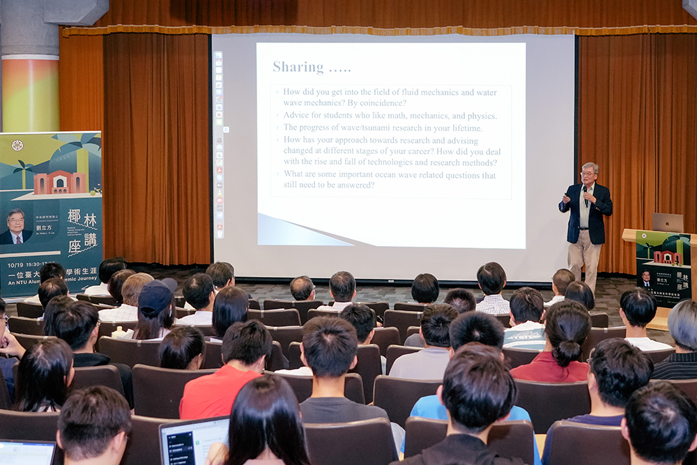 臺大椰林講座第二場邀請國際著名研究海嘯學者,同時為中研院院士、美國國家工程院院士的劉立方到對全校師生發表演說。他鼓勵臺大學子不要害怕失敗,要勇於踏出舒適圈追求自己的目標和理想。