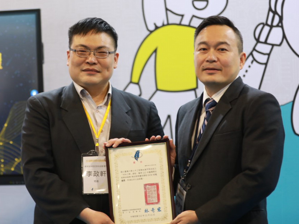 姜至剛老師獲頒教育卓越獎示範獎,左為教育部資訊及科技教育司李政軒司長。
