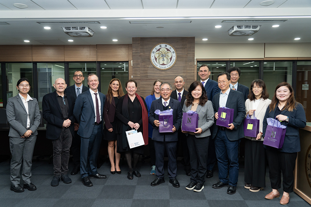 美國西北大學國際副校長Dr. Devora Grynspan率領研發副校長Dr. Eric Perrault及生醫、電機領域等共9位代表,於2023年12月5日參訪臺大校園,拜訪臺大校長陳文章校長及行政主管團隊,討論深化兩校研究合作與師生交流。