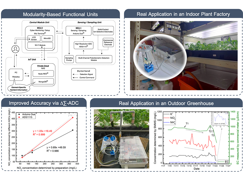 傳統的養液配置主要仰賴酸鹼度和導電度的測定,卻無法提供不同離子在養液中的濃度,難以即時調整養液的單一元素,導致缺乏精確的施肥策略,進而影響作物的生長與品質。為解決上述問題,該平台利用固態接觸離子選擇電極陣列、自動控制系統與雲端整合等技術,不僅使系統更小且易於整合,能在不到1分鐘內提供8種養液巨量離子濃度和pH值的即時結果,協助栽種業者深入瞭解作物對各種營養素的吸收情況,以實現最佳的生長條件、提高產量並改善作物品質。