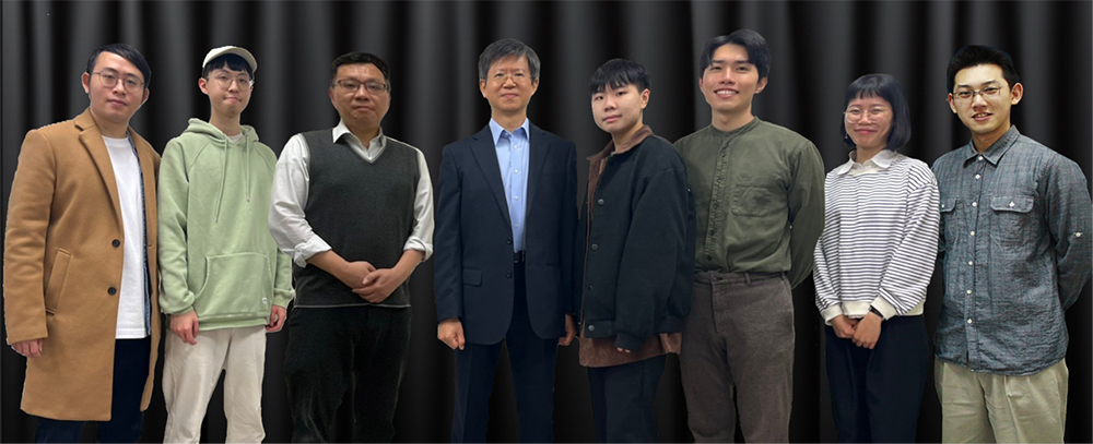 臺大「哲學與虛擬身體實驗室」成員:左起林文祥(台科大)、陳博鈺(亞東科大)、劉為開老師(台科大)、梁益堉老師(哲學系)、林傑蠑(哲學系)、廖耕賢(哲學系)、何昀諭(哲學系)、李彥彤(加拿大Western University)。
