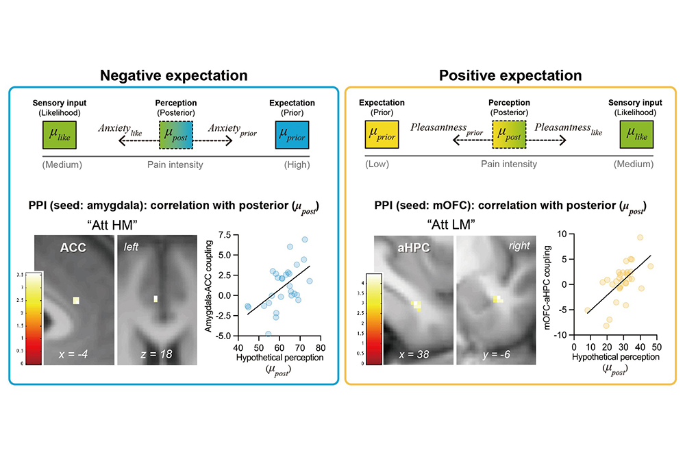 臺大腦與心智科學研究所副教授曾明宗與其研究團隊進行一項功能性磁振造影 (functional Magnetic Resonance Imaging) 實驗,試圖回答這個有趣的問題。藉由紀錄受試者的情緒反應與痛覺評分,他們發現,當預期疼痛增加時,受試者會感到焦慮,導致對疼痛的感受增加。相反地,預期疼痛減少會產生相對愉悅的情緒,因此降低疼痛的感受。研究團隊藉由運算模型 (computational model) 進一步發現,受試者過去的痛覺經驗以及當下痛覺刺激所引起的情緒會參與大腦的資訊整合,決定最終的痛覺感受。