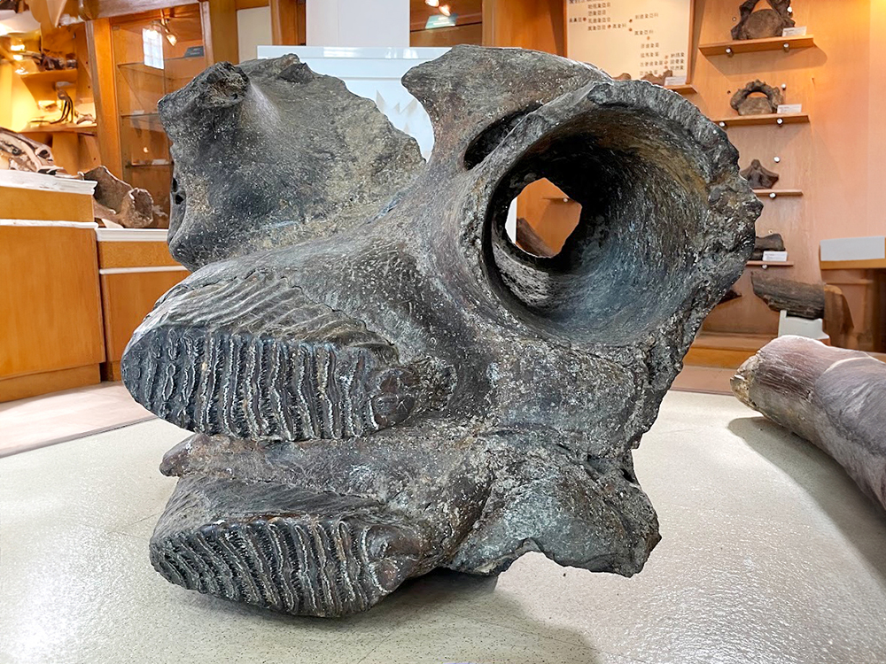 臺灣所發現的巨大古菱齒象頭骨化石,同樣典藏於臺南大地化石礦石博物館。