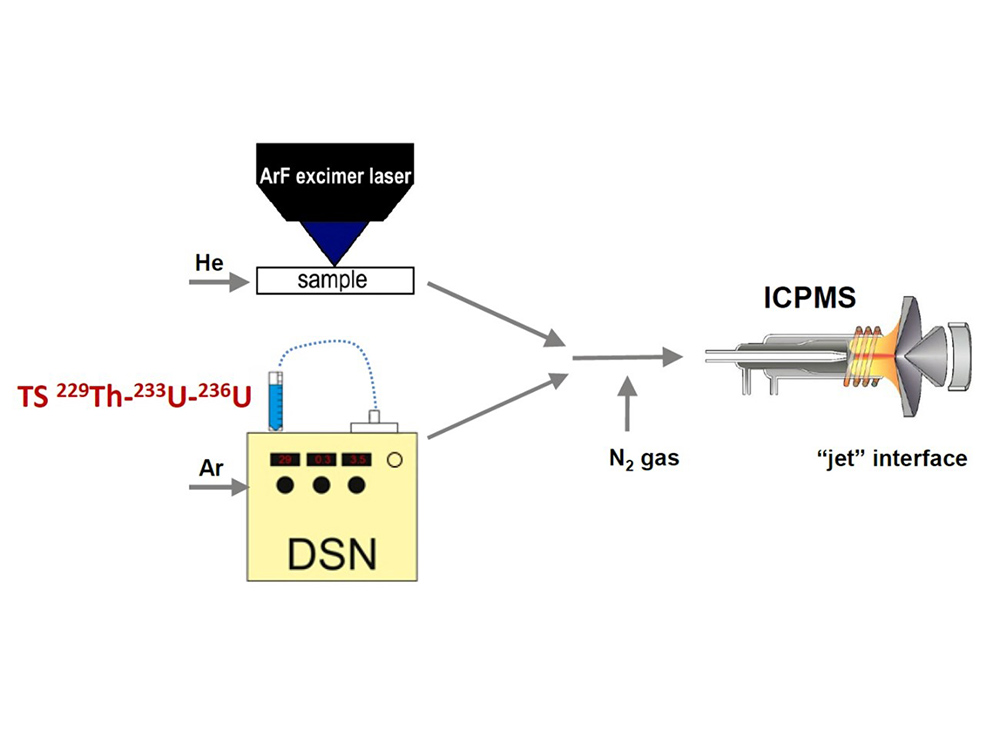 沈教授主持的臺大地質系很嗨實驗室(HISPEC)的鈾釷定年技術,是以鑽頭在岩石標本的拋光表面上鑽取約0.1-0.5克標本進行化學處理,純化出鈾與釷元素,再進行儀器分析,提供高精度 (±0.1-0.4% , 2σ) 的定年結果。但此技術有其侷限性,包括採樣鑽取點需約1 釐米 (mm),以及繁複化學處理步驟與可能的實驗過程汙染問題。雷射剝蝕感應耦合質譜儀 (LA-ICPMS) 提供一個可以快速、直接、高解析的技術優勢;用雷射剝蝕標本,取樣點僅有數十微米,剝蝕出的微小顆粒直接導入儀器,進行測量,省去化學步驟。此技術具備有微小取樣與快速分析的優點,但因其低靈敏度差和誤差大的缺點,大大限制此技術的應用範圍,況且僅數千年年齡的樣本,無法分析。