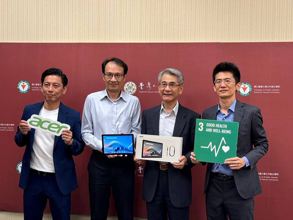 由左至右:宏碁平板運算事業處處長陳江村、宏碁基金會執行長郭劍成、臺大公共衛生學院院長鄭守夏、流預所所長林先和。
