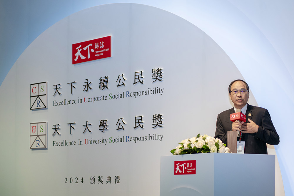 最後,丁副校長與在座貴賓及獲獎代表分享道,臺大將持續以「內建校園永續力,外擴社會影響力」作為核心精神,努力在社會中發揮更大的影響力。(照片由《天下》雜誌提供)