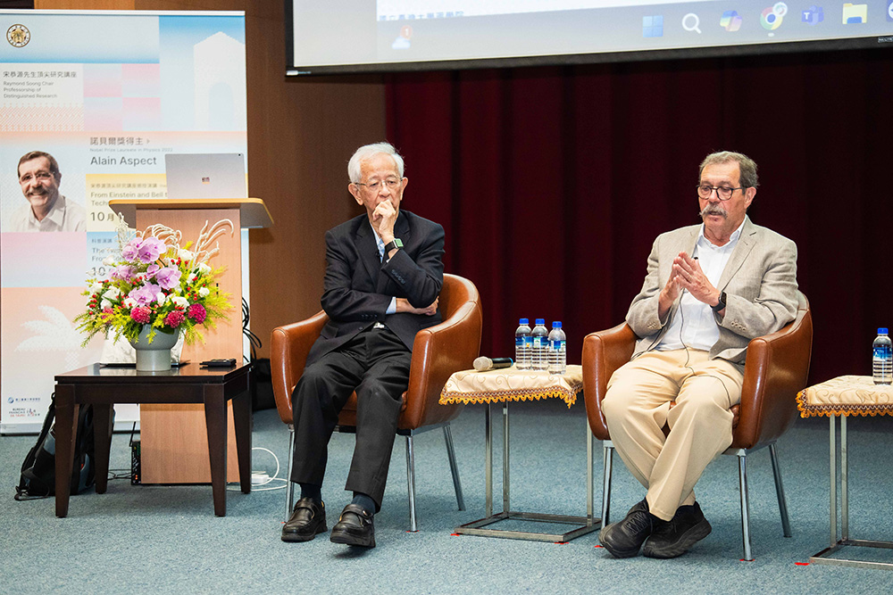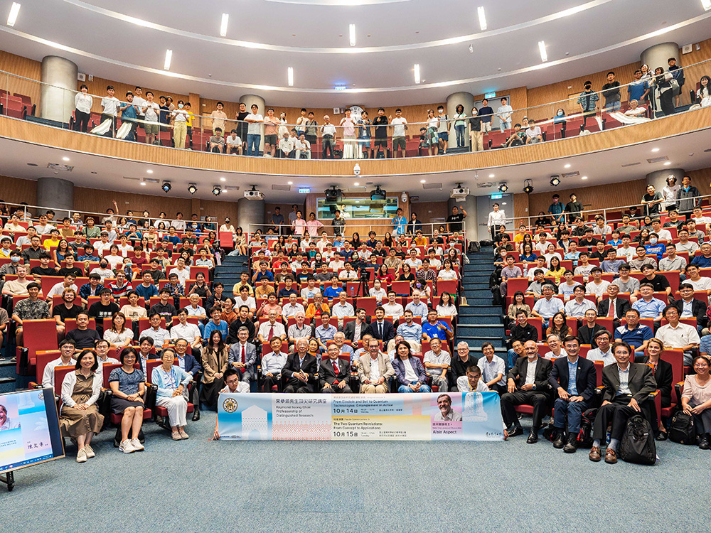 2位諾貝爾獎得主阿蘭·阿斯佩 (Alain Aspect) 教授與李遠哲院士,於2024年10月15日齊聚臺灣大學,出席備受矚目的科普演講與聯合論壇,分享他們對量子物理與現代科學挑戰的見解。這場活動吸引許多大學與高中學子到場參與,現場座無虛席;許多無法親臨現場的大眾及外國人士也透過線上直播共襄盛舉。