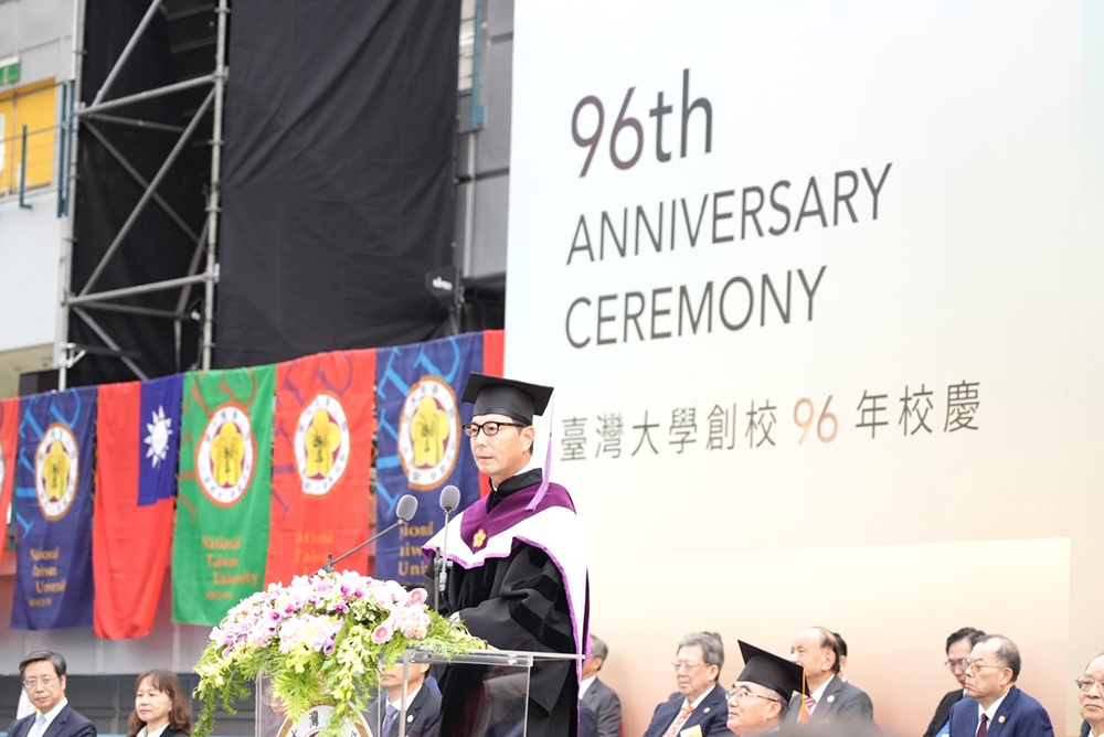 國立臺灣大學於11月15日上午於校總區綜合體育館舉行創校96年校慶慶祝大會,由校長陳文章主持,邀請歷任校長、各地校友及各界貴賓與會。今年頒授2位名譽博士,分別為富邦集團董事長蔡明忠獲頒名譽法學博士,以及於10月14日授予2022年諾貝爾物理學獎得主、法國科學家阿蘭·阿斯佩(Alain Aspect)名譽理學博士,表彰2人在業界及科學領域的傑出貢獻。此外,大會亦表揚10位傑出校友並頒發學生社會奉獻特別獎。