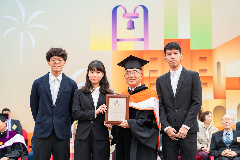 典禮中,陳校長特別介紹兩位名譽博士的成就:阿蘭·阿斯佩教授深入研究量子糾纏與貝爾不等式,提供實驗證據突破數十年的物理爭議,奠定量子科技發展的基礎;蔡明忠董事長則在金融、電信與電商等領域促進產業創新,建立全球品牌,引領臺灣產業創新及永續發展,並積極投入社會公益與教育,成為業界典範。
