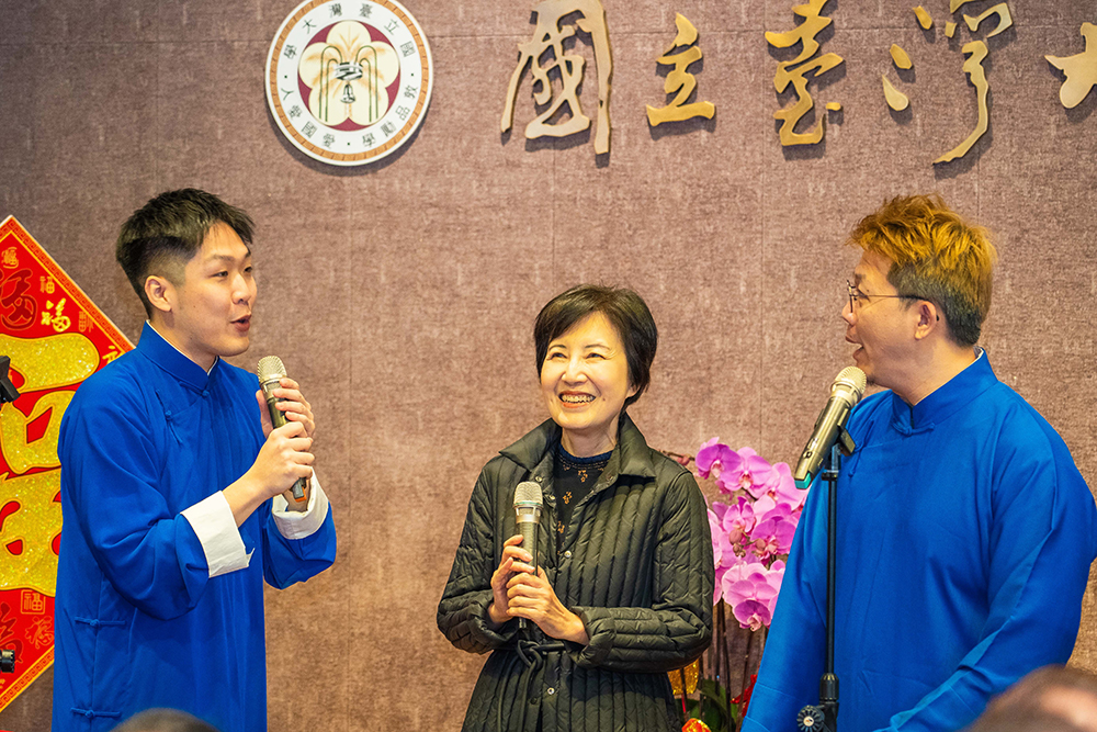 今年春節團拜活動邀請精通相聲與脫口秀的專業演員–黃逸豪,與現就讀於臺大戲劇所,同時為客家電視台主持人的宋明翰表演相聲。2人幽默的表演風格,結合時事與臺大歷史,創造出不少專屬的「臺大梗」,引來全場不斷的掌聲及笑聲。