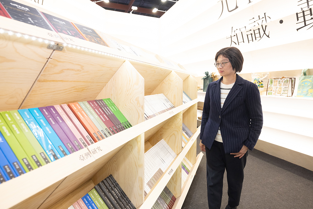 臺大副校長廖婉君參觀臺大出版中心展位。
